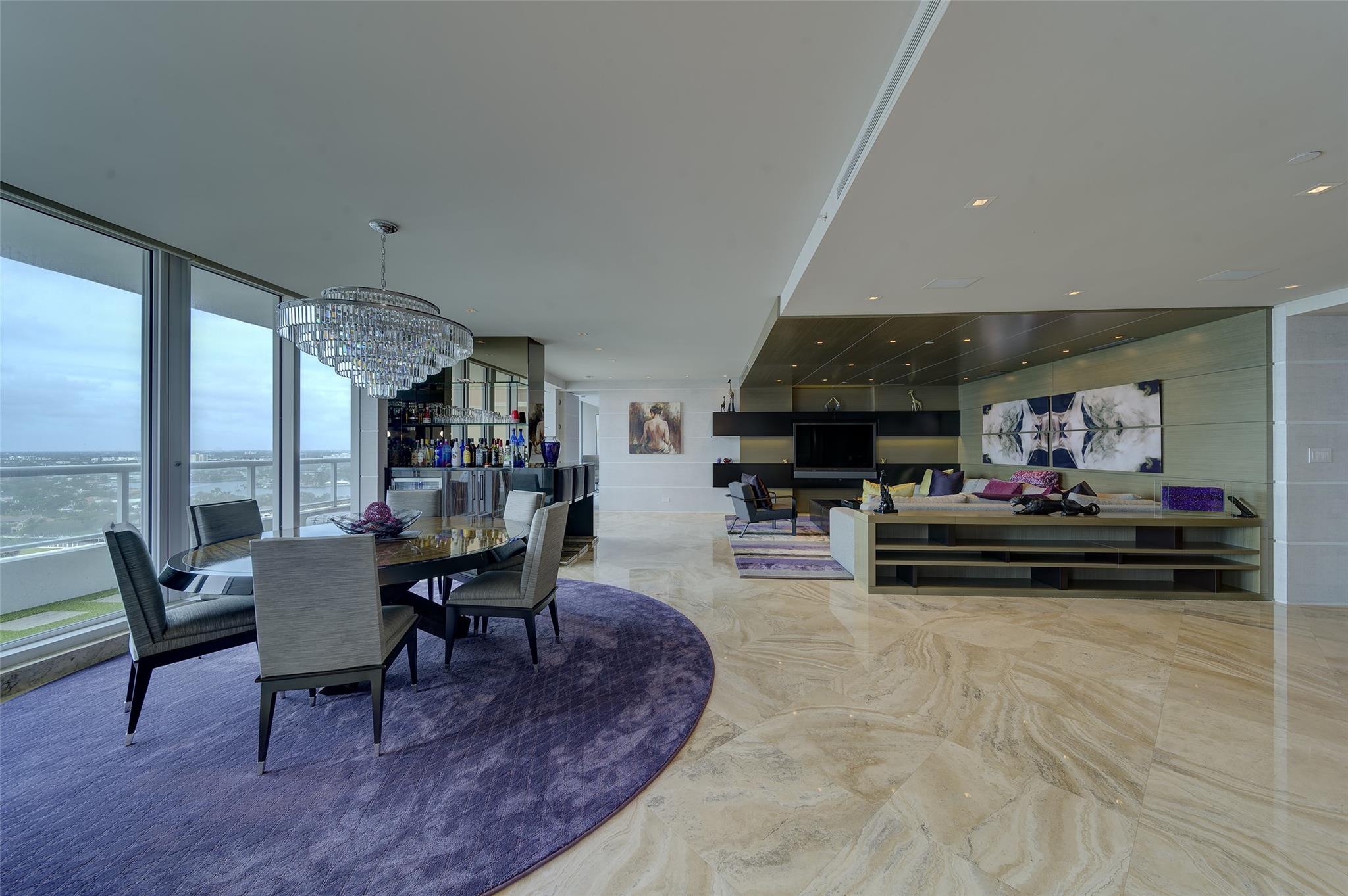 Ritz-Carlton 5 Diamond resort lifestyle awaits you on beautiful Fort Lauderdale beach! Stunning 3/3.5 with award winning interior by B&G Design. This is one of just 28 private residences occupying the upper floors of this luxury property with private residential lobby and elevators and full time concierge/managers. Spacious open floor plan with split bedroom layout makes it ideal for entertaining while viewing the constant parade of boats cruising the intracoastal. The backdrop of the Las Olas Isles is mesmerizing with magnificent sunset, skyline, and city scape views beyond. Gorgeous finishes include marble & onyx, custom high-end lighting, built-in cabinetry, custom bar with wine cooler, and laundry room. Two parking spaces are exclusive to this unit, and your beloved pet is welcome!