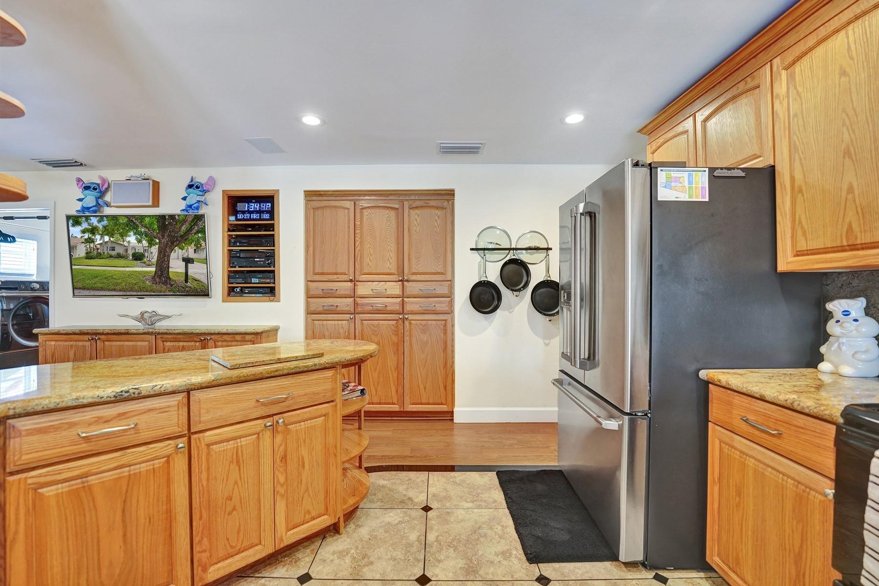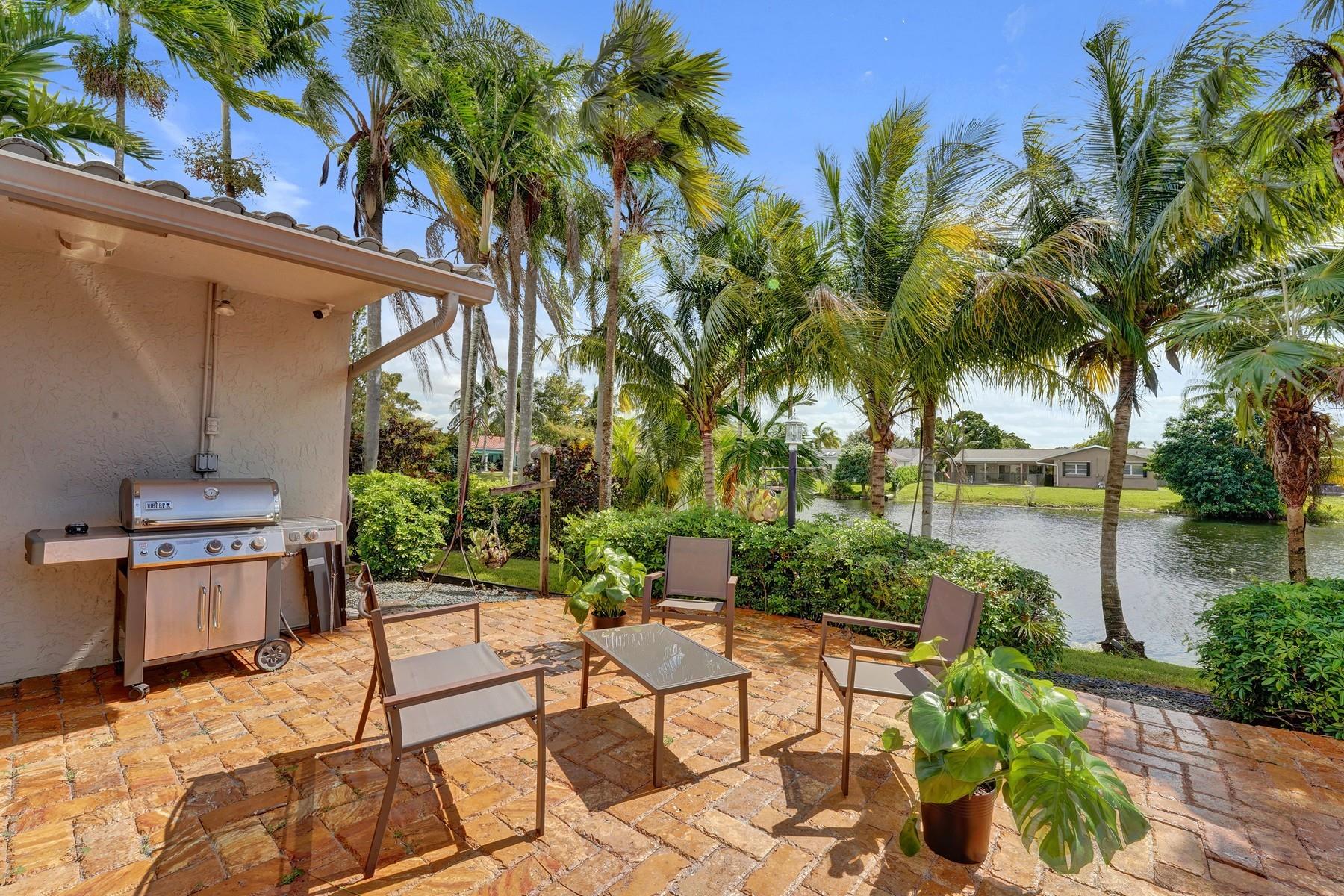 Supplements: Stunning, fully modernized single-family WATERFRONT residence with breathtaking LAKE VIEWS and direct backyard access to community canals and lakes. Whether you're casting a line from your own yard or trolling the serene waters by boat, this is a fisherman's dream come true.LAYOUT:Split plan with 3 bedrooms, 2 baths, formal living & dining rooms, sunroom/office, family/media room, and expansive patio. 2-car garage with EV charger (Tesla charger also available) and extensive storage cabinets & work areasSECURITY, STORM PROTECTION, & ACCESSABILITY:Impact-rated glass throughoutWhole-home backup generator powered by buried propane tankConcrete barrel tile roofSecurity camerasExtra-wide doorways in second bedroom and bathroom for wheelchair accessLUXURY ENHANCEMENTS:Chef's kitchen with real oak cabinetry, granite countertops, stainless steel appliances, and Caf brand French-door refrigeratorBrazilian Cherry engineered wood flooringCustom fitted cabinets throughout for optimal storageBuilt-in surround sound in family/media roomSmart lighting in office, bedrooms, and kitchenPrimary bath with walk-in shower and upgraded fixturesSecond bath with walk-in tub, rainfall showerhead, and handheld sprayerKenmore steam washer/dryer (1 year old)Additional refrigerator in garage$5,000 worth of wood cabinetry in garageENERGY EFFICIENCY & COST SAVINGS:Tankless hot water heaterOutdoor Weber BBQ, generator, & tankless hot-water heater are fueled by low-cost propane (under $30/month)South-facing rear windows reduce summer heat and maximize winter sunCustom awnings provide shade.OUTDOOR LIVING:Expansive lot with mature palms and a producing avocado treeLarge rear lanai with travertine paversGas grill on back lanaiWaterfront - sit on existing bench by the water and enjoy the Florida sunshineFish and boatSouthern exposure enhances natural light and seasonal comfortLOCATION:Centrally located near I-75, I-595, and Sawgrass ExpresswayMinutes from top-rated Plantation schools, Sawgrass Mills outlet mall, medical centers, and Fort Lauderdale-Hollywood International AirportYour Florida Lifestyle Awaits. Step into serenity and sophistication. This immaculate home offers a carefree lifestyle with luxurious amenities, thoughtful upgrades, and a tranquil waterfront setting. Don't miss this rare opportunity to own a well-priced gem in Nob Hill Estates. Schedule your visit today your Florida paradise is ready for you!