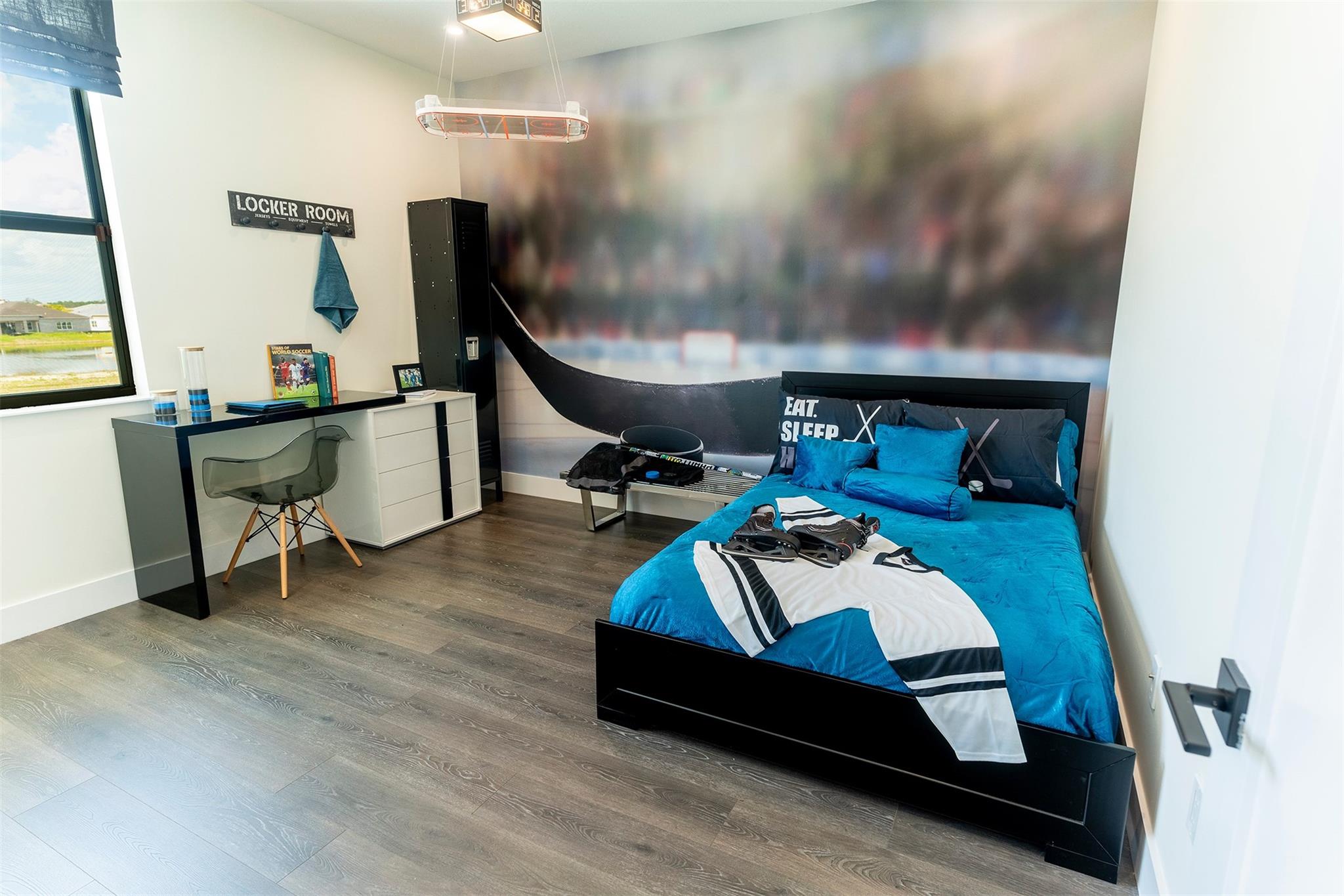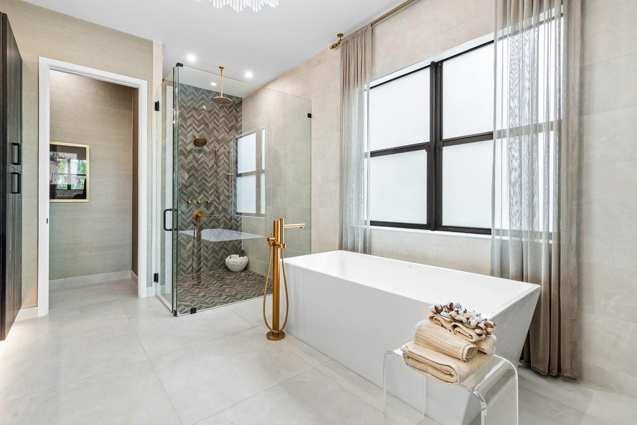 BUILDER MODEL HOME FULLY FURNISHED! Discover the Manhattan Model at Solana Bay, a 5 Bed / 6 Bath lake-view home featuring two primary suites, a gym, den, loft, and media room. Filled with natural light, this open-concept design offers high ceilings, 32x32 porcelain tile, and an extra-large chef-inspired kitchen with quartz countertops, oversized island, stainless steel appliances, wall oven, built-in microwave, 42" cabinets, and a natural gas cooktop. Includes a 2-car garage, tankless water heater, gas dryer, impact windows/doors, smart home automation, and alarm monitoring. Enjoy a private pool with hot tub and outdoor summer kitchen. Community amenities include a resort-style heated pool, lap pool, tennis, pickleball, fitness center, and cabanas. Square footage approx.