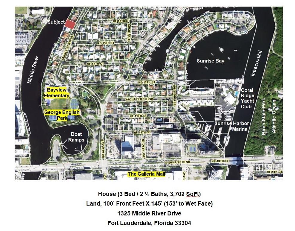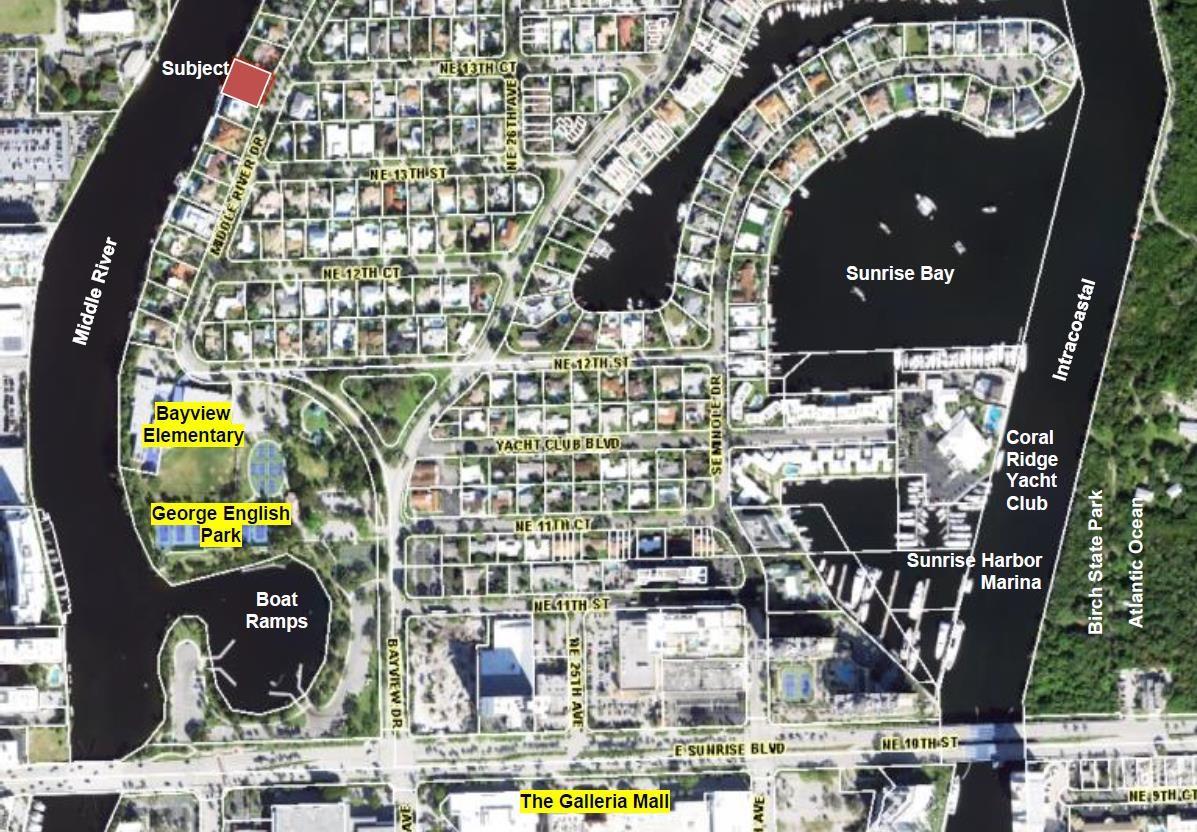Directions: East Sunrise Blvd to Bayview Drive. East on NE 12 St to Middle River Dr. North to the property.