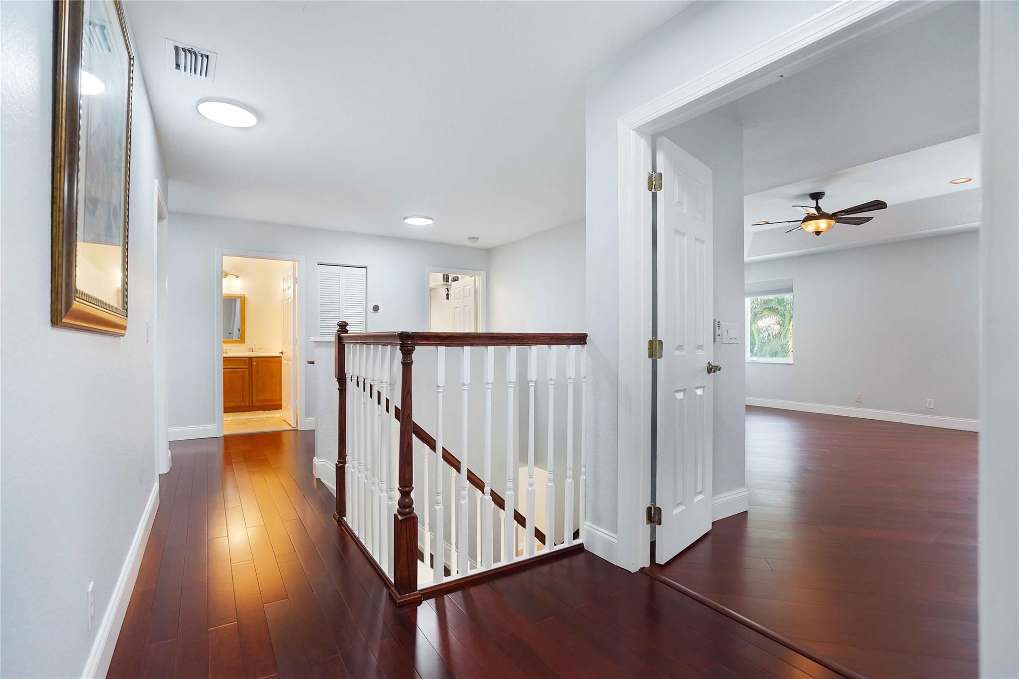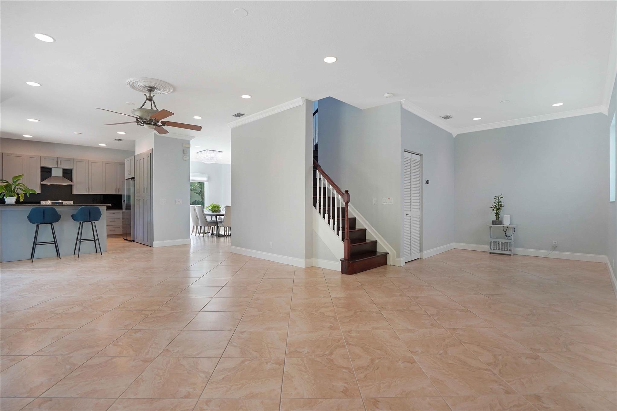 Brand new roof, hurricane-impact windows, and doors. This spacious home offers over 3,000 sq. ft., a large fenced backyard, and an oversized covered patio overlooking a natural preserve and a freshwater canal. Featuring 4 bedrooms, 2.5 baths, and a two-car garage with an epoxy floor. The primary suite offers an additional room ideal for an office or a potential 5th bedroom. The home is loaded with upgrades: porcelain flooring throughout the first level, a completely renovated kitchen with new appliances, and hardwood flooring upstairs. A convenient second-floor laundry room adds to the home's functionality. The interior and exterior have been recently painted. Located on a quiet cul-de-sac with no neighbor directly across the street, this home offers exceptional privacy and comfort.
