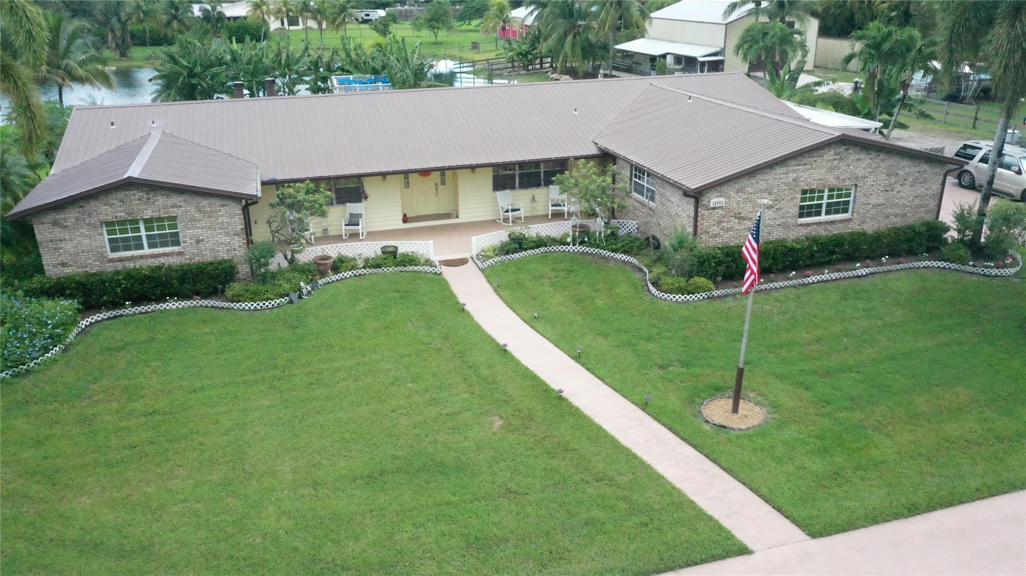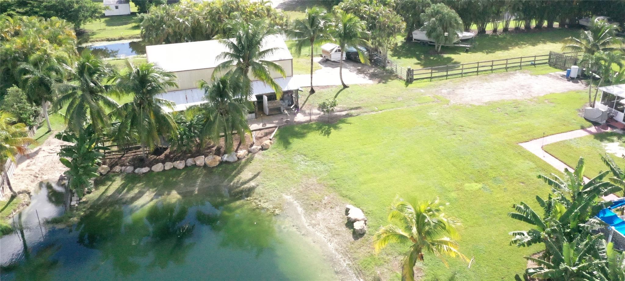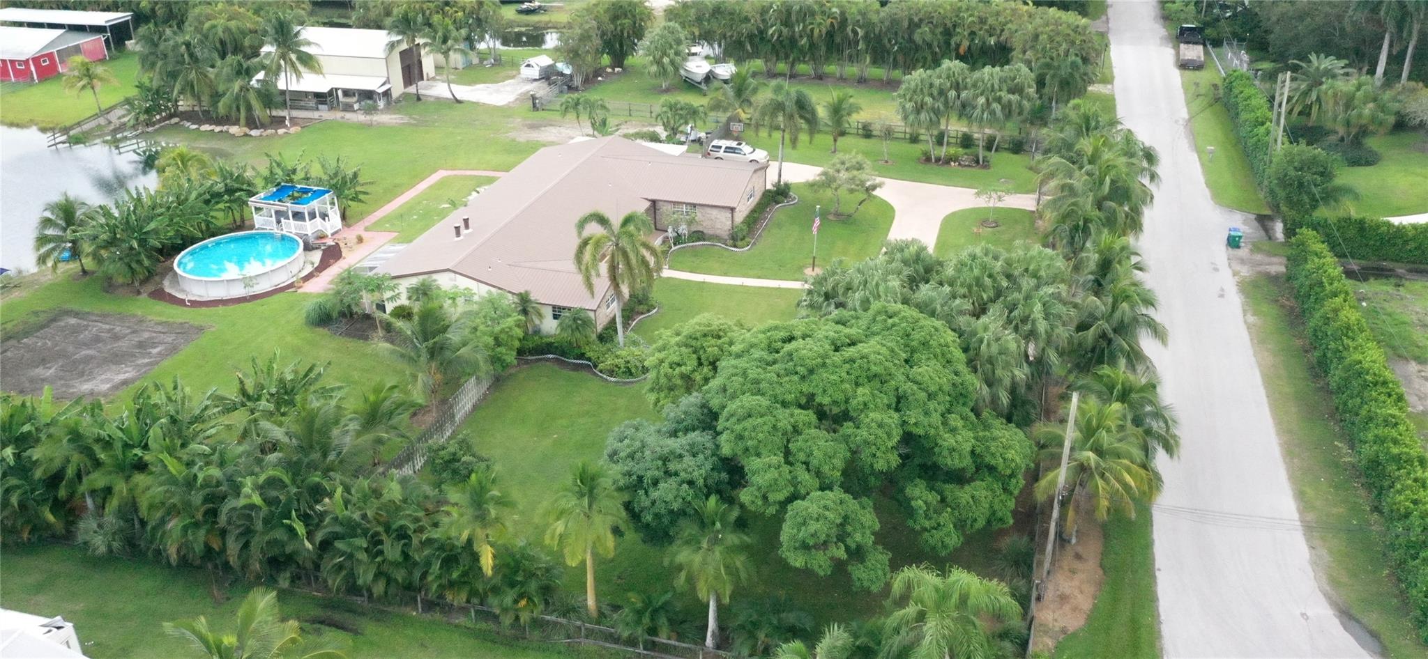 Must see this exceptional tropical property!!! 6 Bed 3 Bath on 2.5 acres Main house 2,731 sq. ft. 4 Bed 2 Bath Adjoining guesthouse 2-Bed 1-Bath with its own kitchenette, private entrance and HVAC providing ample space for guests. Freestanding metal building 50'X32' W/14' eaves W/2 attached stalls, great for hobbies, toys or workshop Perfect for home-based businesses Ample parking for vehicles or trailers. Fully fenced Shared spring fed lake along with 300' of canal frontage Deep water well Tropical landscaping w/ Mangos Avocados Bananas Papayas & Coconuts palms. 27'round above ground pool with solar heating Attached 16'X20' elevated gazebo Easy access to highways, airports, professional sport venues, shopping, hospitals, restaurants, schools Click on Matterport link for unfurnished view