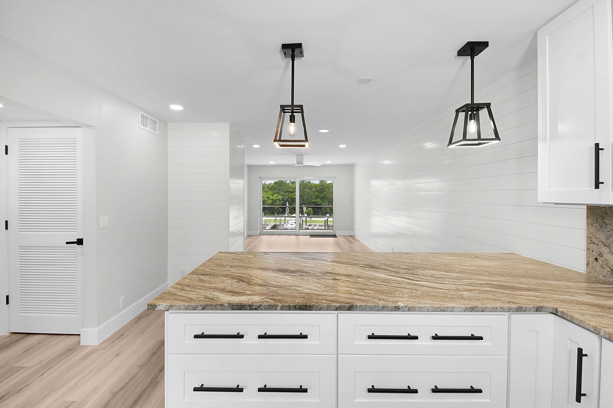 Beautiful St. Lucie Riverfront condo on Hutchinson Island in Jensen Beach. RARE - COMES WITH DEEDED DOCK. Double wide dock w/NEW pilings, electric & lift. 20,000lb capacity. Fits 10.9W x 31L boat. Must see top floor newly renovated condo! Sunset views from balcony, living room, main bedroom & Kitchen. Sunrise views from kitchen & 2nd bedroom. Room for King size bed. All electric, plumbing, bathrooms, ceilings, walls, Impact doors & windows, flooring, kitchen have been renovated and are brand new. Luxury leather granite counter tops, Quartz kitchen sink, Italian stove, soft close cabinetry, Washer/Dryer & more. Come spend time playing in the Ocean at your deeded beach & tiki hut. Close to restaurants, shops & beaches. Pet allowed. Rented Jan-May 2026. Rental income to new owner. Furnished.