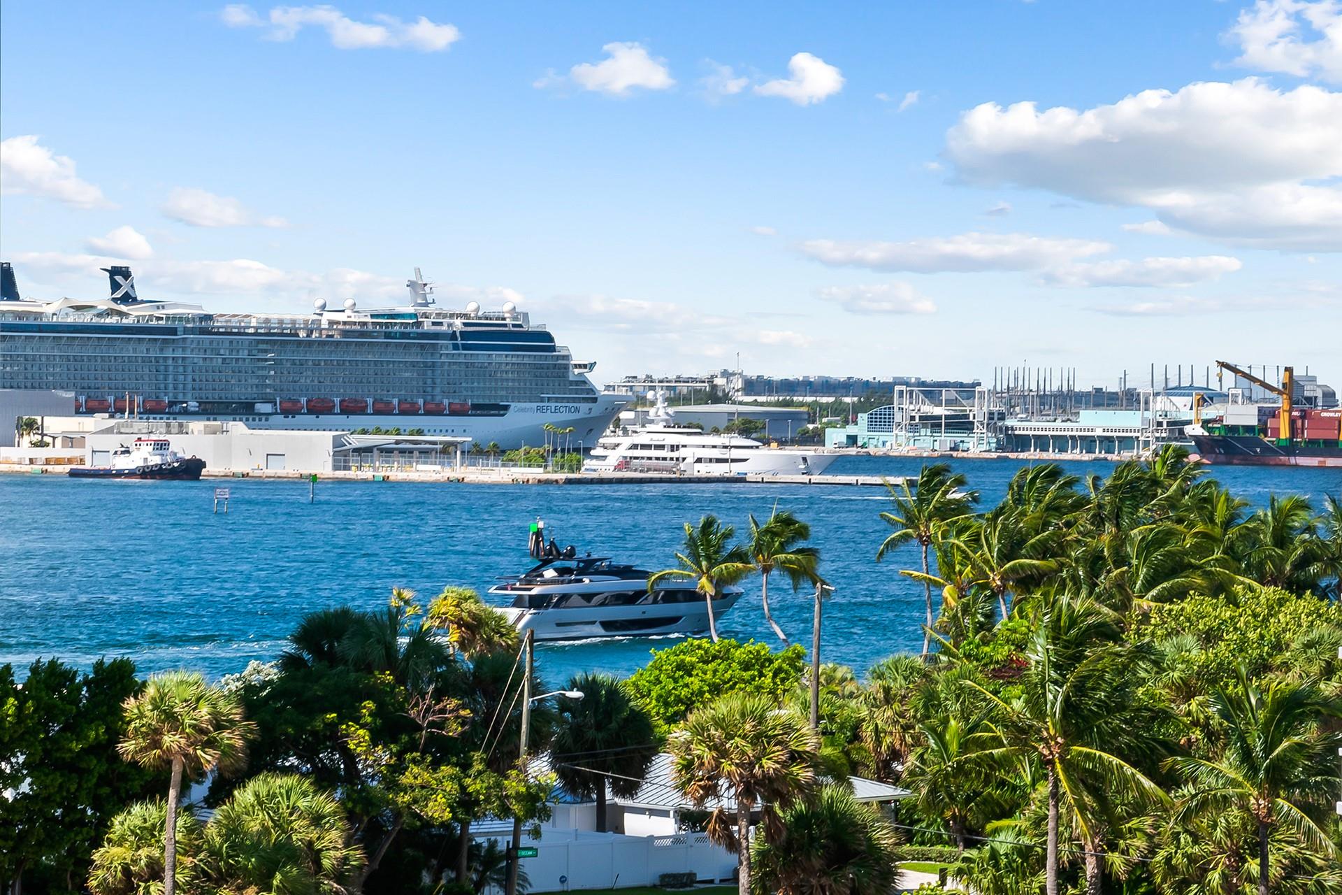 Direct Ocean and Port Everglades Inlet views provide a constant entertaining parade of yachts and cruise ships. This beautifully remodeled apartment boasts an open living area and a spacious eat-in kitchen. Large primary suite complete with dressing room, walk-in closet, and spa-bath. Live at the beach on the barrier island and be just minutes to the International Airport, enjoy shopping and dining on renowned Las Olas Blvd.