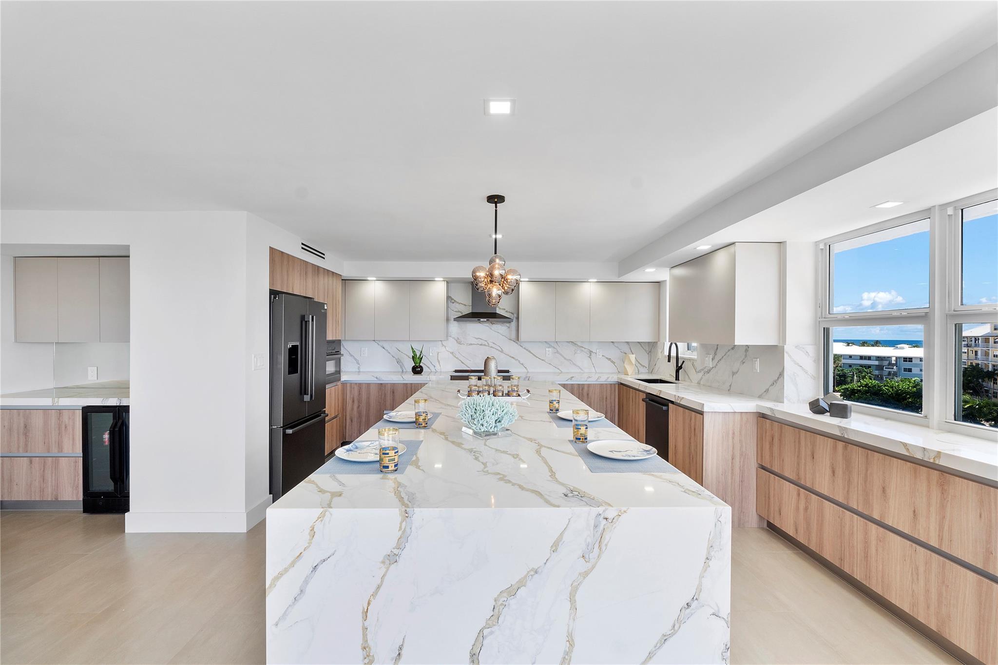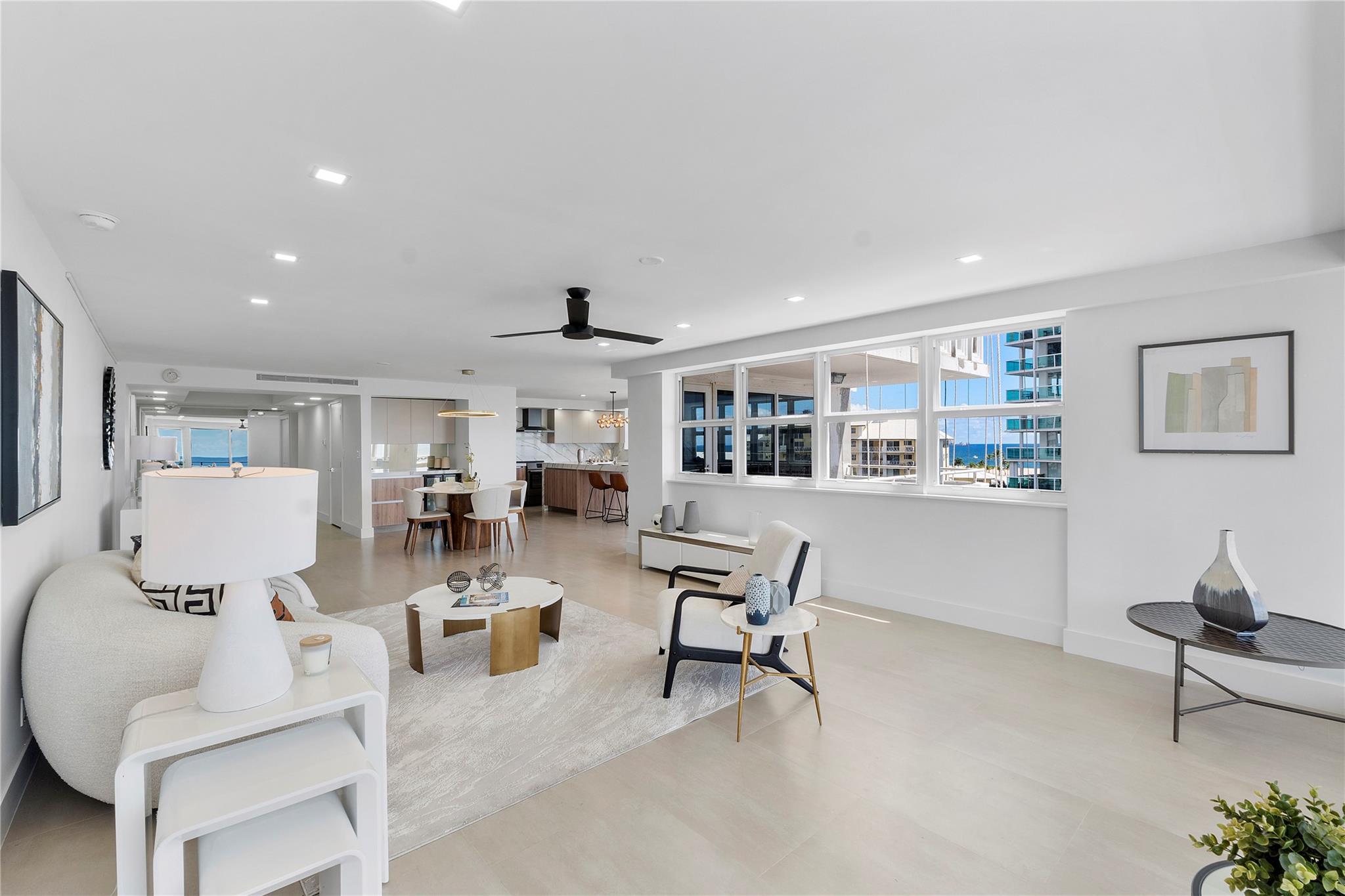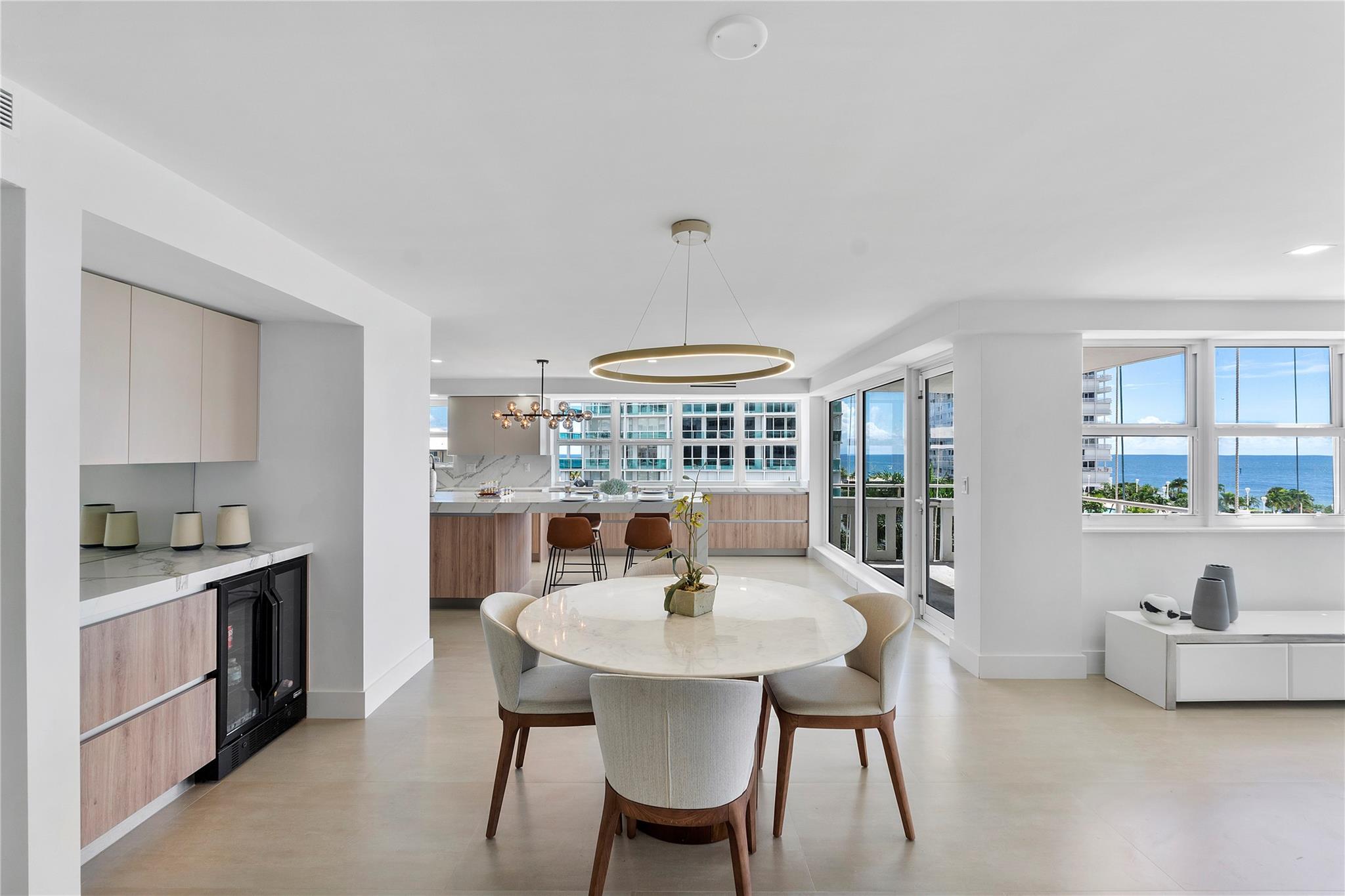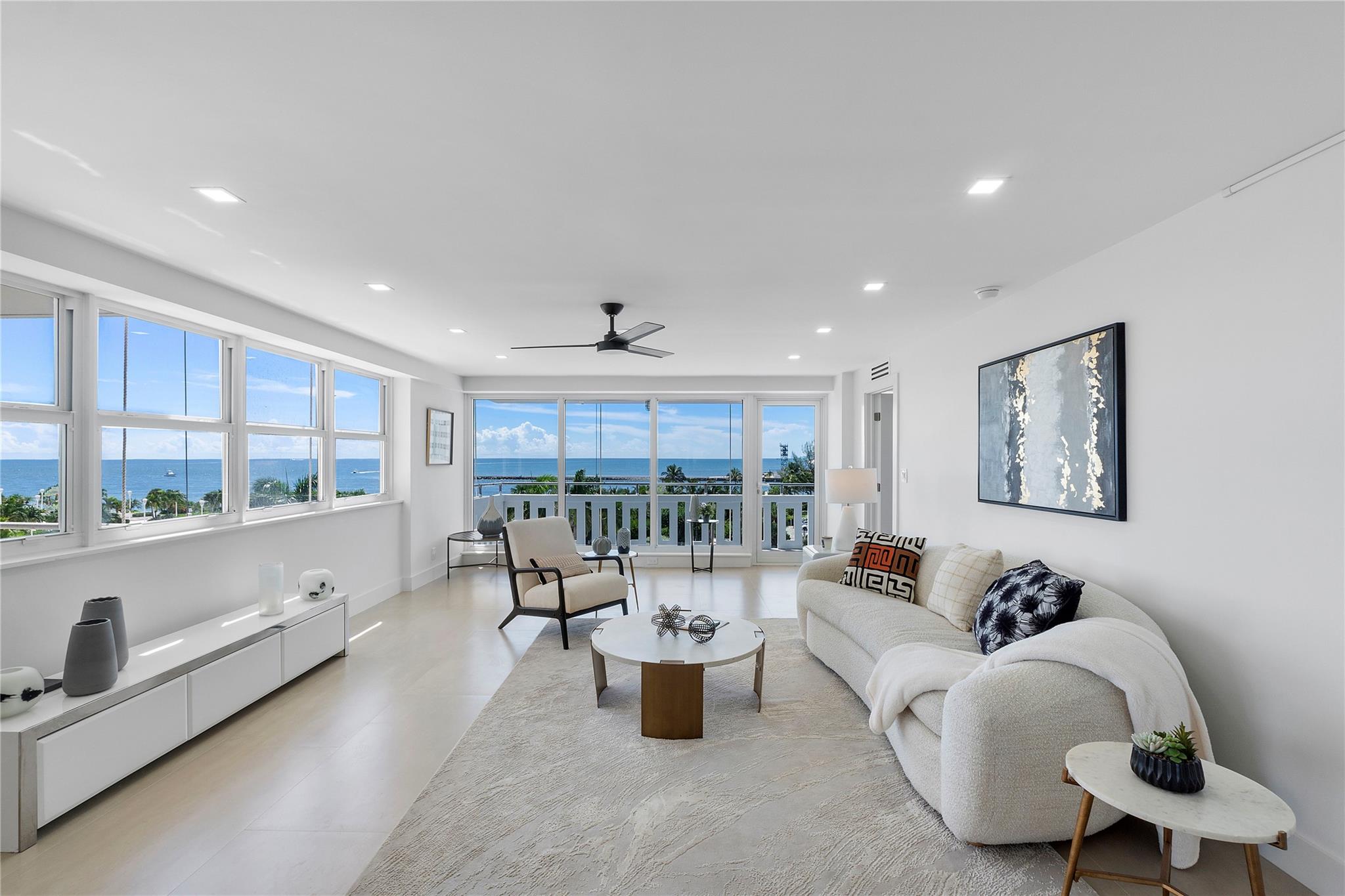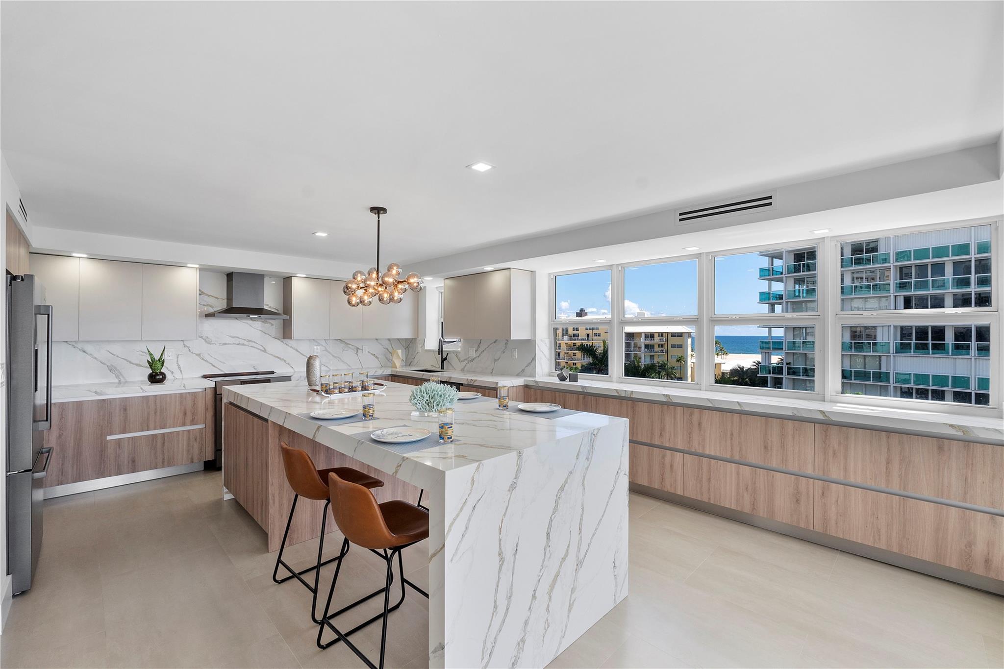 Experience luxury coastal living in this stunning 3B/3B residence spanning 2,650 sf of refined interiors. Quality craftsmanship throughout with two master suites, spa-inspired bathrooms, and Italian ceramic floors throughout, this home in the air is designed to blend sophistication with comfort. Features marble tiles throughout, recessed lighting, custom millwork and open kitchen with 10 ft quartz countertop, floor-to-ceiling high-impact windows showcase breathtaking direct views of the Atlantic Ocean, where cruise ships create a captivating backdrop. Exclusive amenities resort pool, sauna, gym, piano lounge, covered parking, 24 hr security. Situated in one of most desirable neighborhoods Harbor Beach, combines elegance & resort life, across from the largest beach in Ft Lauderdale