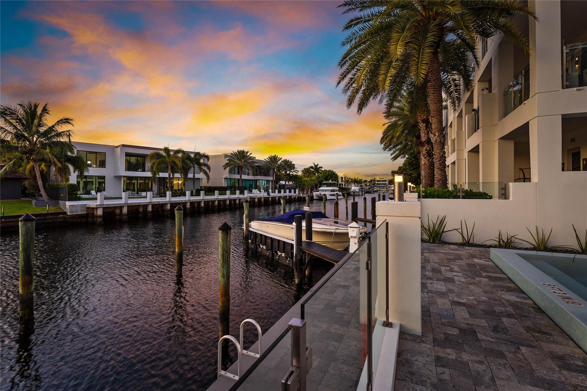 Supplements: Unit comes fully furnished with indoor / outdoor furniture by Artefacto, Mooi lighting fixtures, top of the line Wolf appliances (including built-in coffee maker), automatic window treatments, Control 4 sound and lighting system. Sale excludes artwork, personal effects, and accessories.The Ground Level features a two-car garage with custom built-ins for tidy storage leading into an airy entry courtyard facing foyer and en-suite secondary bedroom / office.Connected by a finely cladded floating staircase, the stunning 2nd Level features a showroom quality kitchen, pantry and laundry room which flow directly into the spacious living room and adjoining terrace, allowing you to fully appreciate the impressive length of the property with seamless indoor/outdoor lifestyle. Also on this level, one can enjoy an upgraded powder room, secondary bedroom, and adjacent full-bathroom.More like its own apartment among the treetops, the primary suite encompasses the entire 3rd Level with seating area, two walk-in closets, soaking tub, double vanities, and a shower fit for a king, queen, or party.The rooftop makes for the perfect private terrace with 360 degrees treetop, city, and ocean views. Ideal for entertaining, all levels are accessible via elevator with an upgraded cabin.Community amenities include a waterfront pool, hydro-spa, guest parking, and boat slips (pending availability). Walk to restaurants, bars, shops, and the beach in minutes. Easy drive to multiple airports and all of what Greater Fort Lauderdale has to offer.Don't miss out on this incredible opportunity for the best priced, water accessible, like-new, beach townhouse -- simply the greatest value in the region.