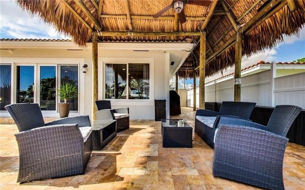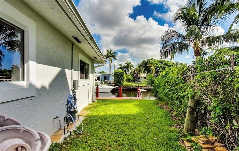Experience the ultimate waterfront lifestyle in Pompano Beach! This stunning 4-bedroom (garage converted, easily reversible), 2-bath home sits at the end of a quiet cul-de-sac and offers everything you need for coastal living. Enjoy 69 feet of waterfront with your own dock, a 12,000 lb boat lift, and easy access to the ocean for fishing, diving, or cruising the Intracoastal for waterfront dining and entertainment. Relax under your backyard Tiki Hut as you take in sunsets or host unforgettable gatherings. The patio features stone pavers, and there's plenty of space to design your pool. Inside, you'll find PGT impact windows, a modern kitchen, and a spacious cedar closet for extra storage. 5th Ave fixed bridge was raised in 2021 to approx 14 ft clearance and more than 25 feet wide