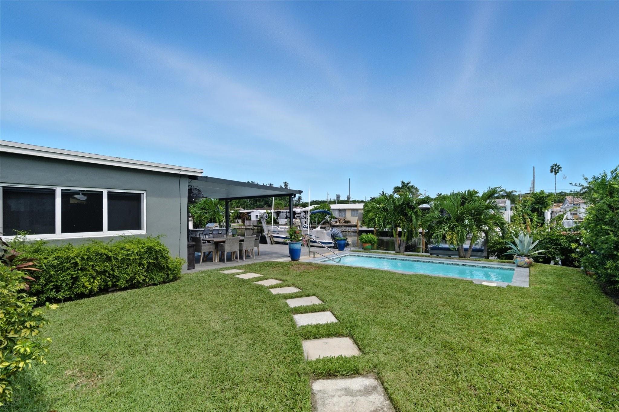 Rare opportunity to own a beautifully renovated waterfront retreat with 3 bedrooms and 2.5 baths. This home offers a formal dining space, chef's kitchen with stainless appliances, white cabinetry, and a large island with seating. LVP flooring flows through the main living areas, while the laundry room provides full-size washer/dryer and generous storage. Outdoors, enjoy a fenced backyard oasis with pool, sundeck, covered patio with pavers, summer kitchen/bar, cabana bath, and dock with lift, power, and dual levels for easy boat loading. Boasting 65' of direct ocean-access waterfront, plus a new metal roof, updated plumbing/electrical, and impact windows/doors. No HOA! With so much to love about this home the only way to take it all in is to tour it before it's gone.