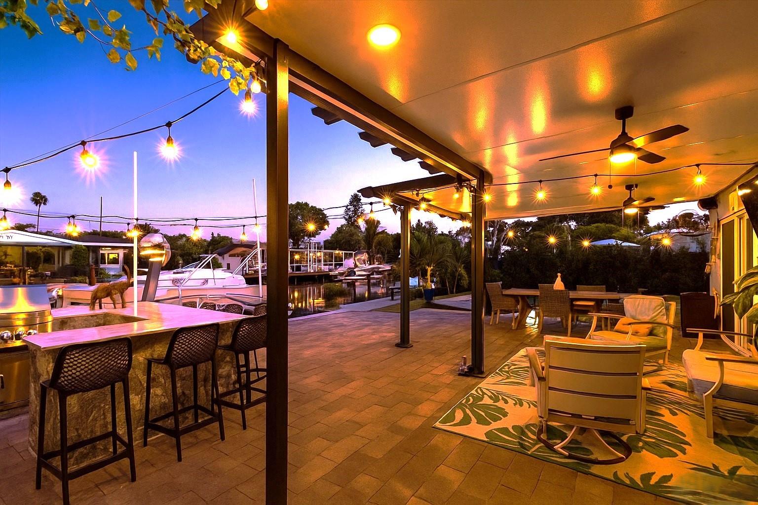 Exterior Features: Built-in Grill; Custom Lighting; Fence