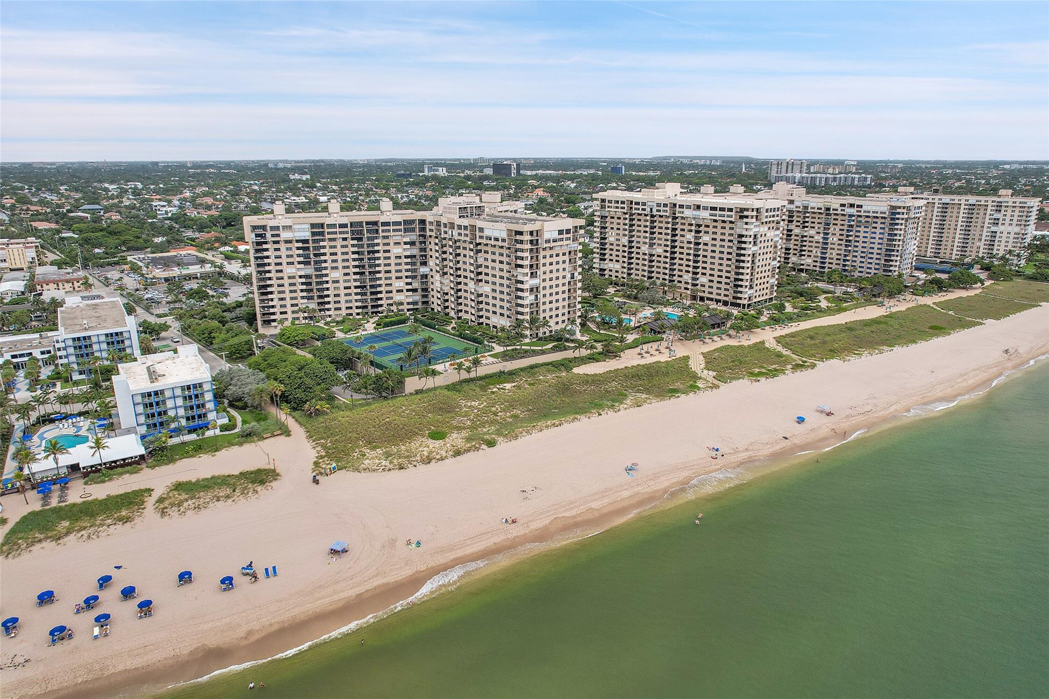 VIEWS, VIEWS 2Bed/2 bath (approx. 1500sqft) SUNRISE mornings DIRECT OCEAN...SEA FOREVER! Overlooking beach, lush gardens, cabanas, pools. Updated open kitchen; S.S appliances, wood cabinets, updated bathroom granite countertop. Utility room with W/D, impact windows. Split floor plan with large bedrooms and walk-in closets in both bedrooms. Parking underground. 14 acres of beachfront property, 3 pools, 8 tennis courts, pickleball, 30+BBQ'S under the palms, 3 open air kitchens. Pet friendly (2-20lbs). 2 Pet Parks, Herb Gardens, 3 EV stations, car wash. Rent day one! Easy swim to coral reef for snorkeling & diving right out your back door. Stone's throw to shops and walking distance to the quaint town of L-B-T-S and the pier. Moments from LAS Olas, Wilton Manors & 3 airports. MUST SEE!