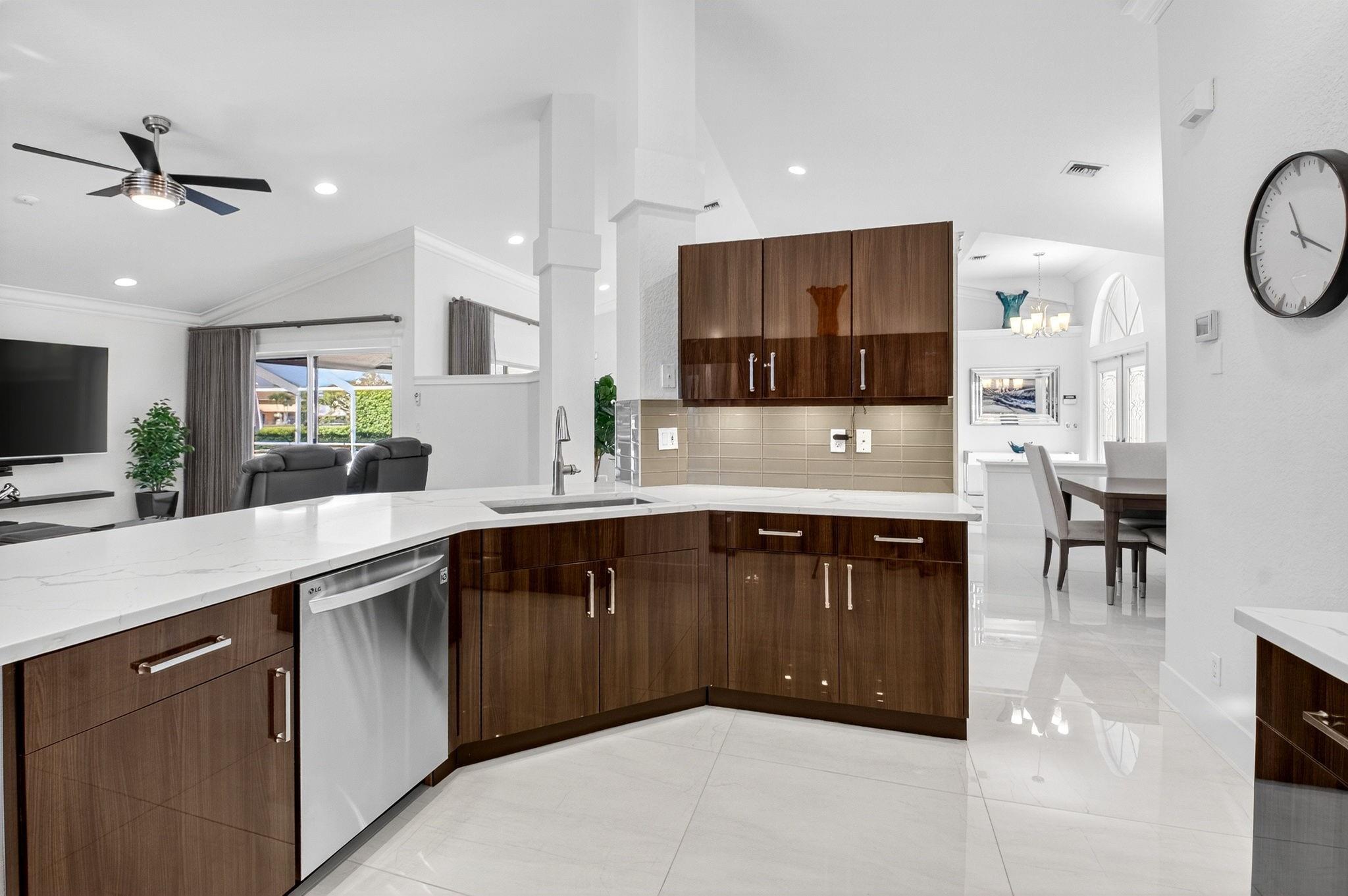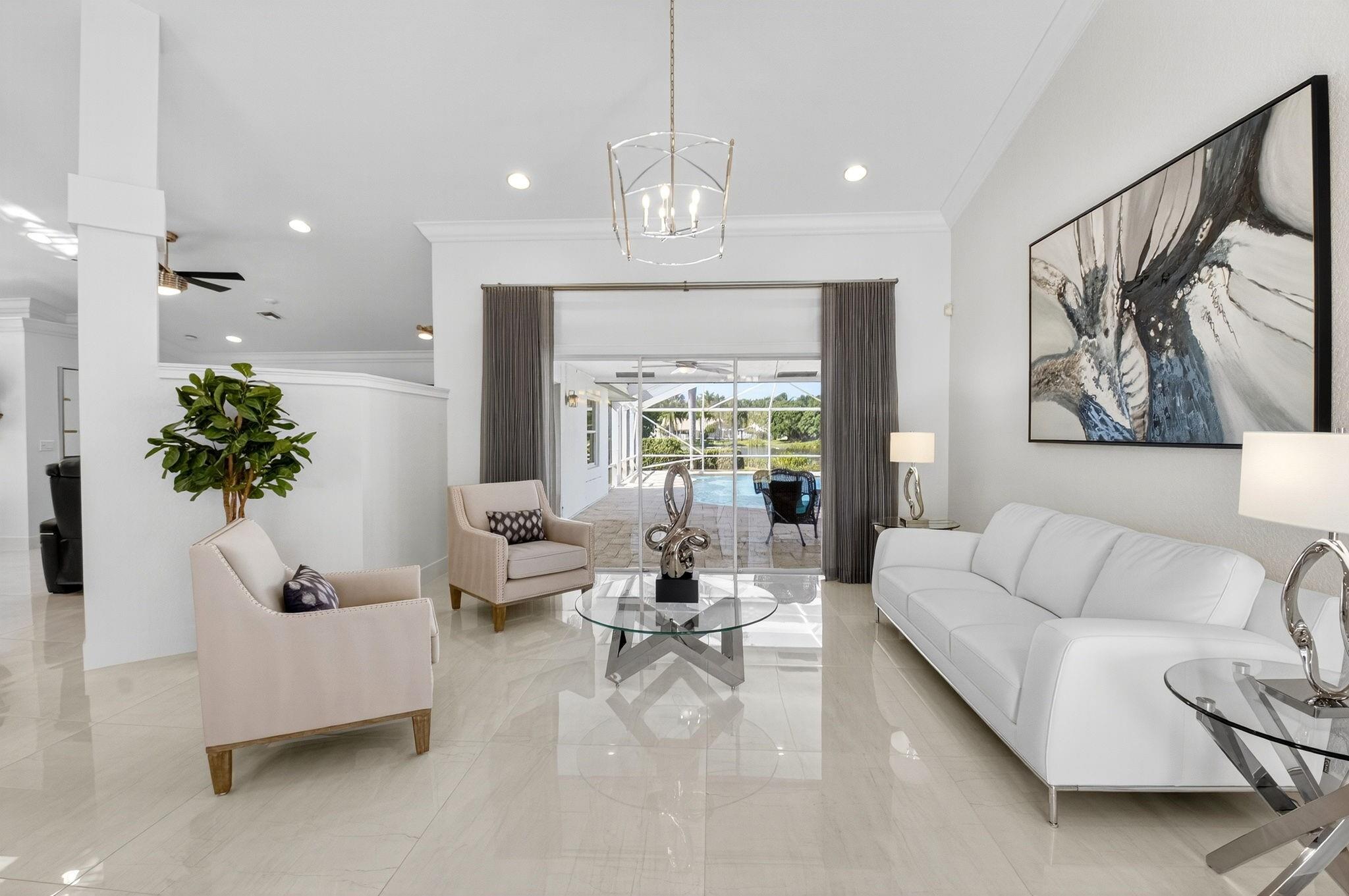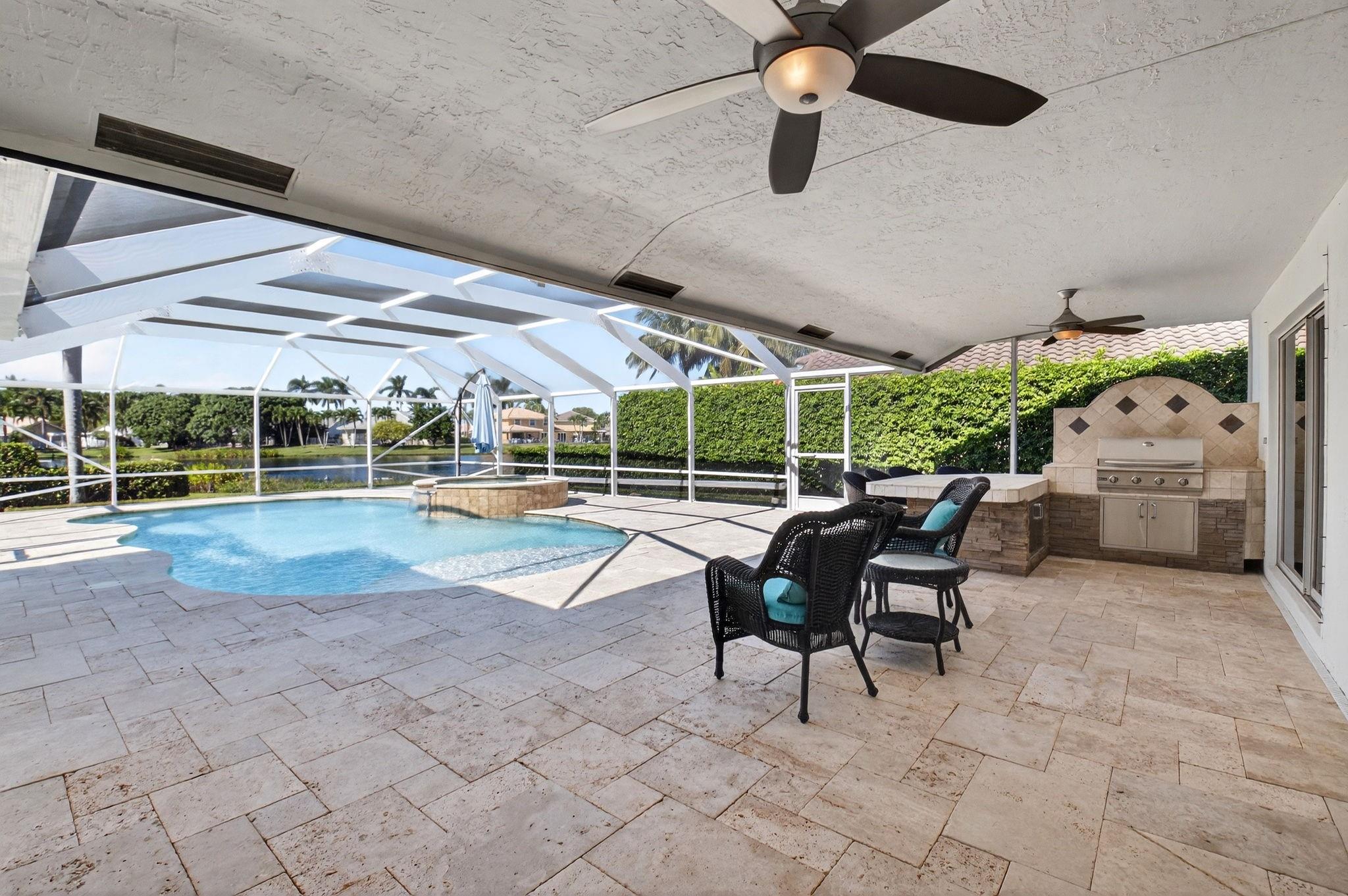 Spectacular and Immaculate Custom Home in this sought after Gated Community of Lakeview Estates! Beautiful 4/2 pool home on an oversized (room for an addition) Lake Front Lot with beautiful views designed with style this home features vaulted ceilings and a Open-Concept living, dining, kitchen, and family area, perfect for entertaining. Fantastic huge (53'x30') screened Pool patio area with Spa and Custom Built-in BBQ. Very private setting. Stunning light color 36 inch floor tile throughout the main living areas. Primary bedroom overlooks Pool & Lake, with a large walk-in custom designed closet. Additional highlights include a oversized 2-car garage and updated finishes throughout. A-Rated School district and just minutes from shopping, dining and entertainment. MUST SEE!