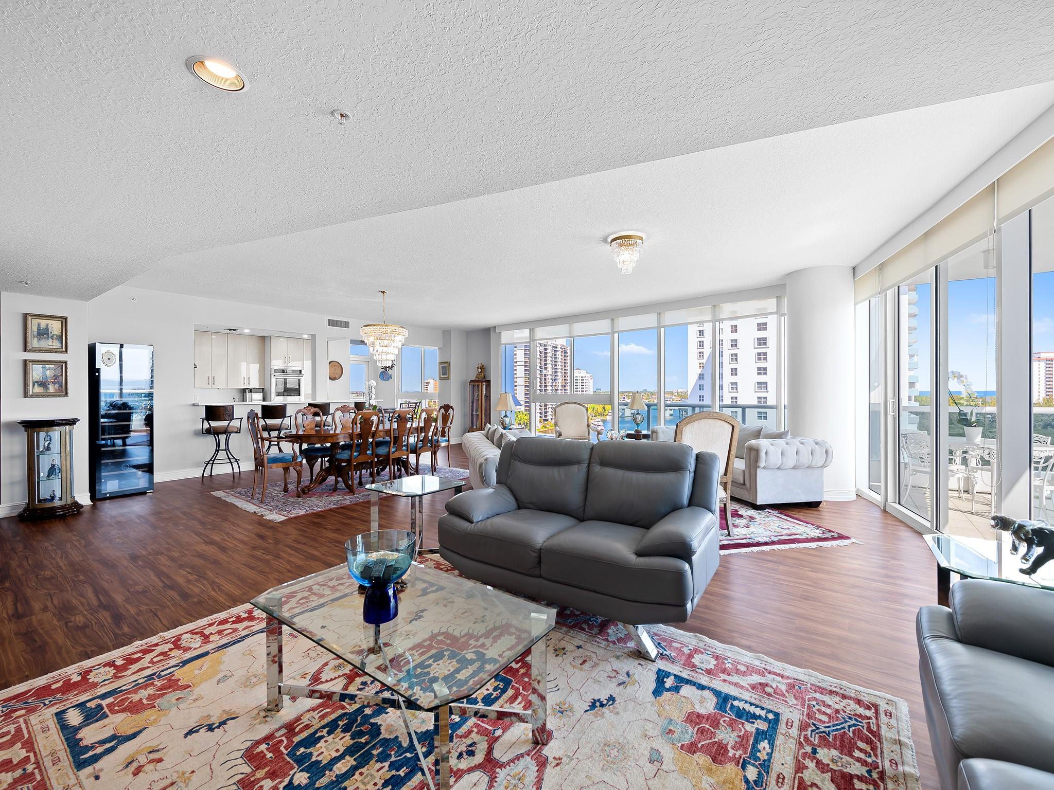 SELLER MOTIVATED! Stunning 9th-floor NE corner residence at La Rive, a boutique luxury building with only 36 units. This 3BR/3.5BA, 2,992 SF home offers sweeping river, ocean, and Birch State Park views through floor-to-ceiling impact glass. Features include an updated entertainer's kitchen, refreshed bathrooms, wood flooring, and a flexible open layout. Enjoy private elevator entry, 24-hr security, a riverfront pool, 24-hr fitness center, 2 parking spaces, storage, and pet-friendly livingall just a short walk to the beach, shopping, and dining.
