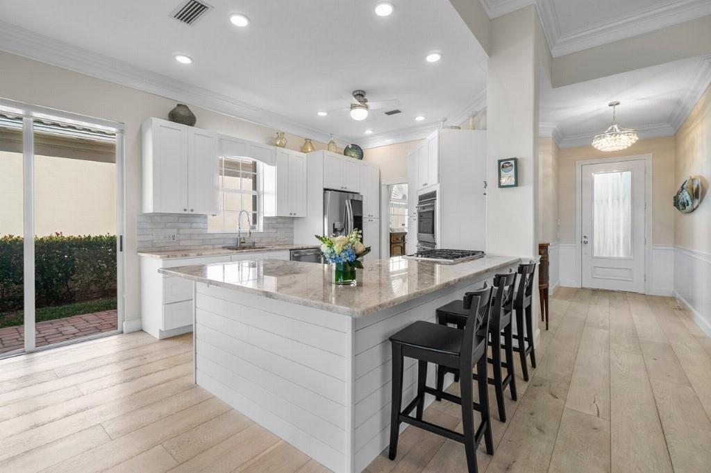 Welcome to one of The Retreat's most exceptional Oakmont homesfully customized, elegantly finished, and ideally positioned along a quiet, sought-after street with sweeping lake and preserve views. Completely updated in 2022, the home features a chef-caliber Wolf kitchen with marble countertops and bespoke cabinetry, rich wide-plank engineered wood flooring, refined crown molding, wainscoting, and solid wood louvered doors. Spa-inspired baths offer furniture-style vanities, marble finishes, and a luxurious 74 soaking tub in the primary suite. The expansive lanai, framed by an insulated roof and no-see-um screening, includes a built-in outdoor kitchen perfect for year-round entertaining. Peace of mind comes from accordion shutters, whole-house water filtration, a 22kW generator, and...