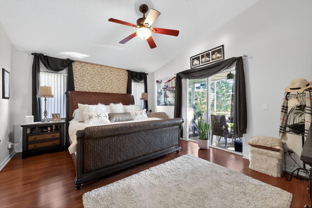 Welcome Home to this beautiful oasis located in The Estates at Windchime Lakes, a private gated community. Updates include roof, CAC, exterior painting, and enclosed patio. This home has an open floor plan with high ceilings, primary bedroom and laundry on first floor. The kitchen is equipped with custom wood cabinets, granite countertops, stainless steel appliances, tiled floor, and sliding glass doors that look out onto the lake. Living room and dining room have high ceilings, tiled floors, and large windows with alot if natural sunlight. Primary suite has ensuite bathroom with jacuzzi tub and stall shower as well as sliding glass doors to an enclosed private patio. The second floor boast 2 bedrooms, 1 full bathroom, and a loft style office area. Community amenities including a resort-st